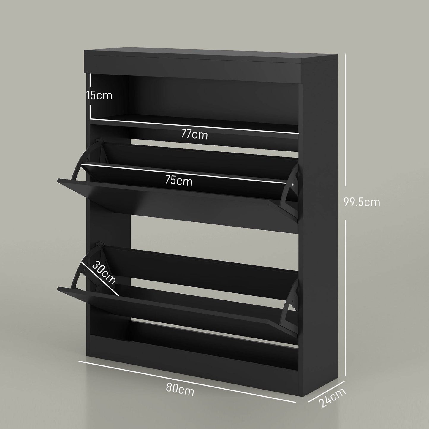 HOMCOM Sleek Black 16-Pair Shoe Storage Cabinet with Adjustable Flip Doors