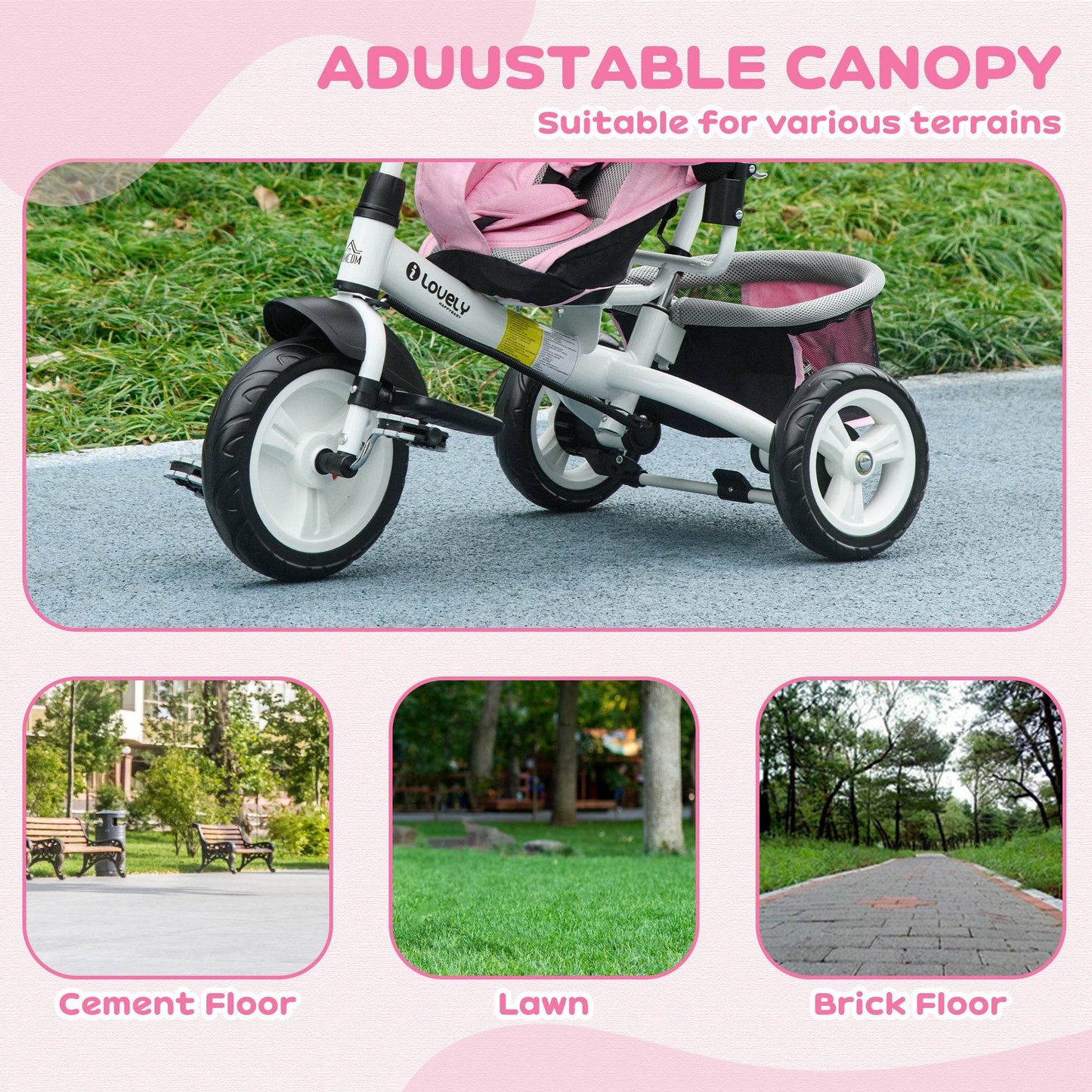 HOMCOM Transformable 4-in-1 Kids Trike with Canopy, Push Handle, and Safety Features - Pink