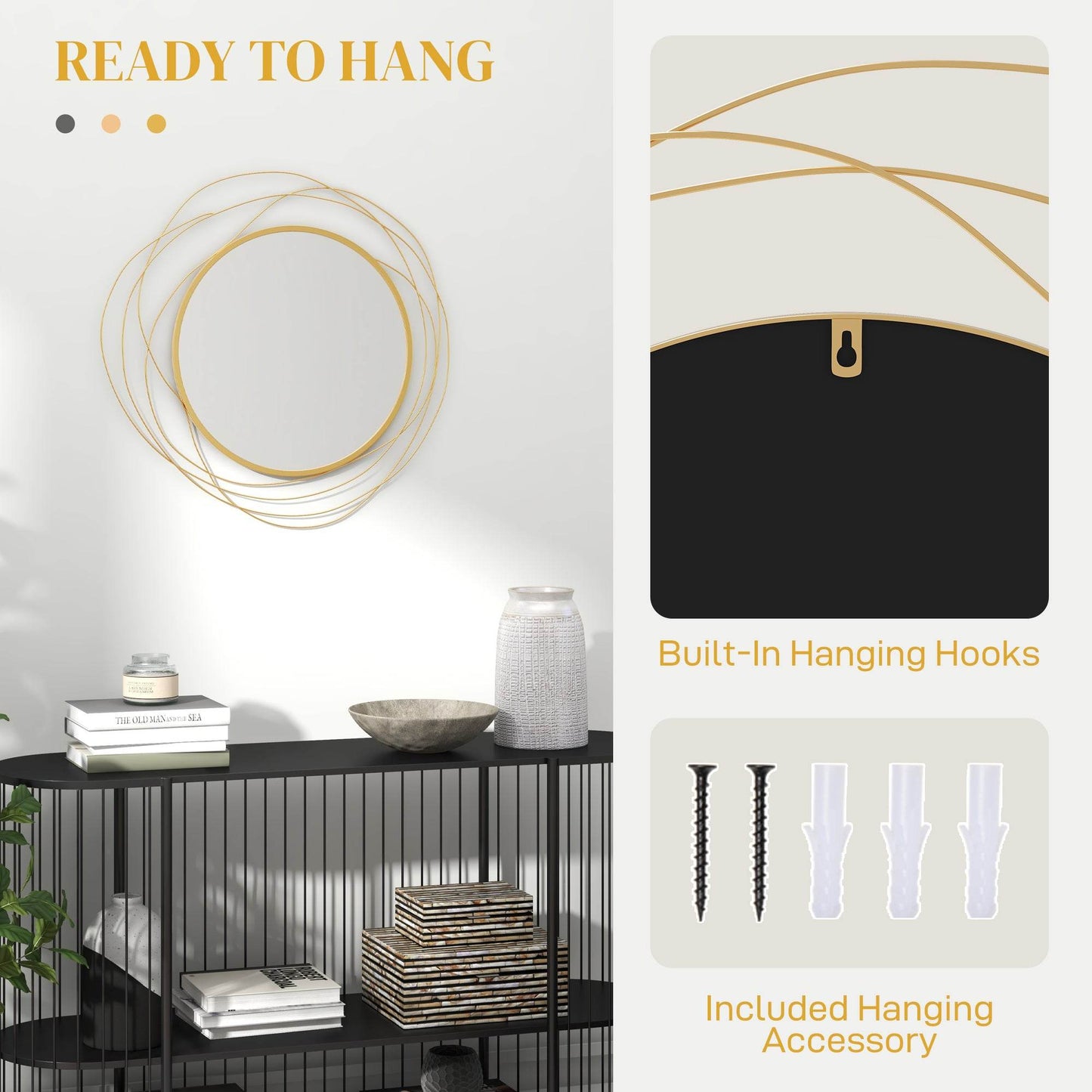 HOMCOM Abstract Gold Tone Metal Wire Wall Mirror with Hanging Accessories