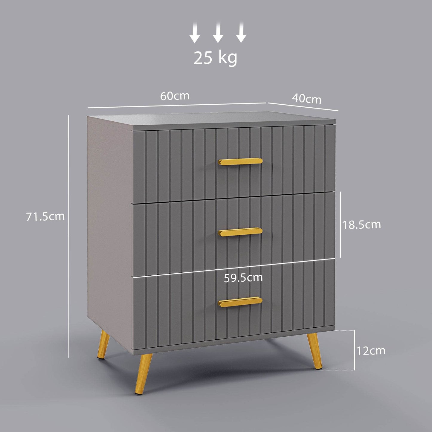 HOMCOM Modern Dark Grey 3-Drawer Dresser with Gold Accents and Aluminium Legs