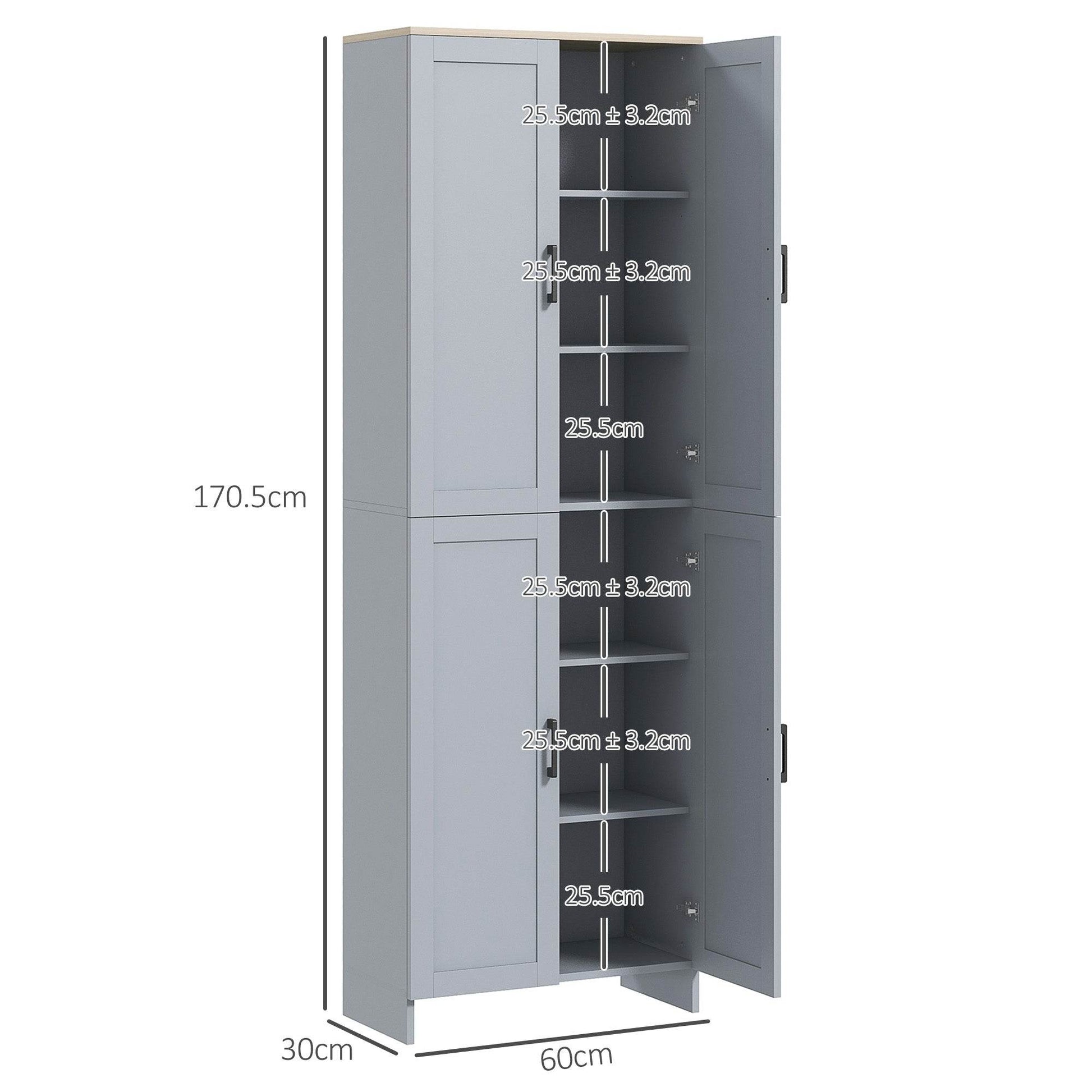 Tall Grey Kitchen Storage Cabinet with Adjustable Shelves and 4 Doors