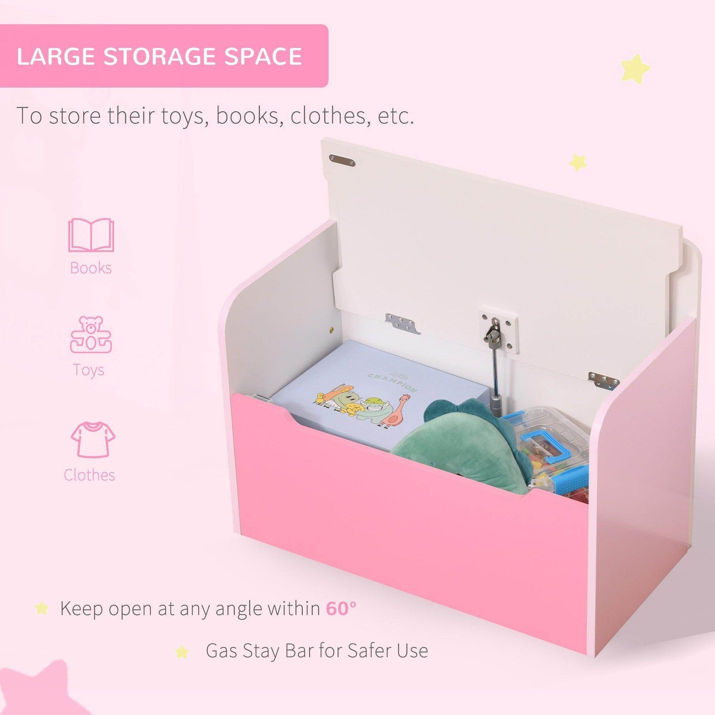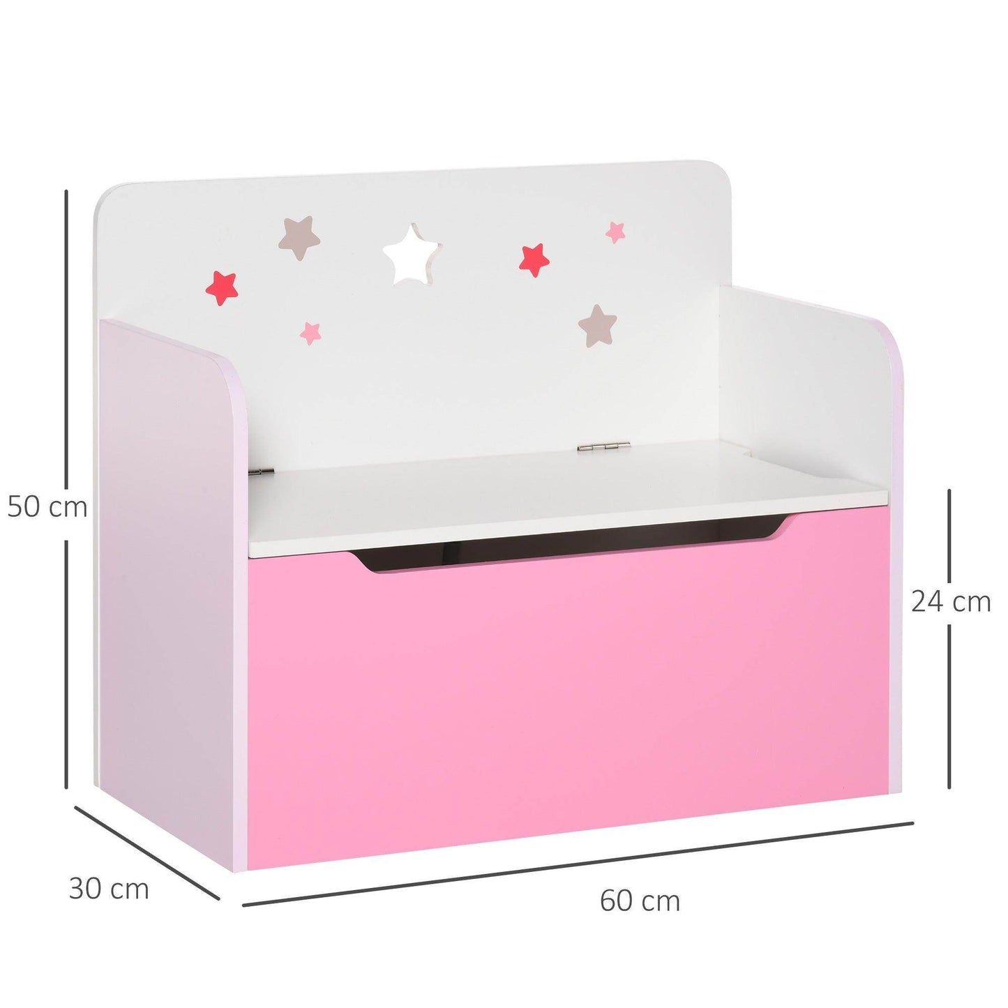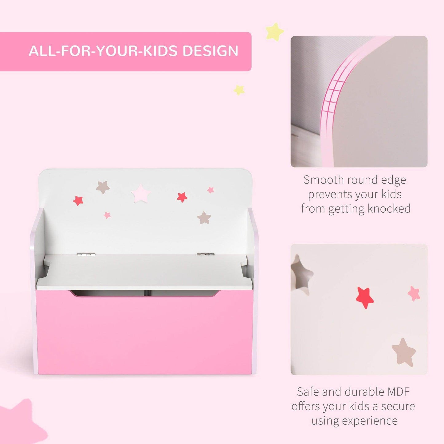 HOMCOM Kids Pink Toy Storage Chair - 2-in-1 Design + Safety Hinges