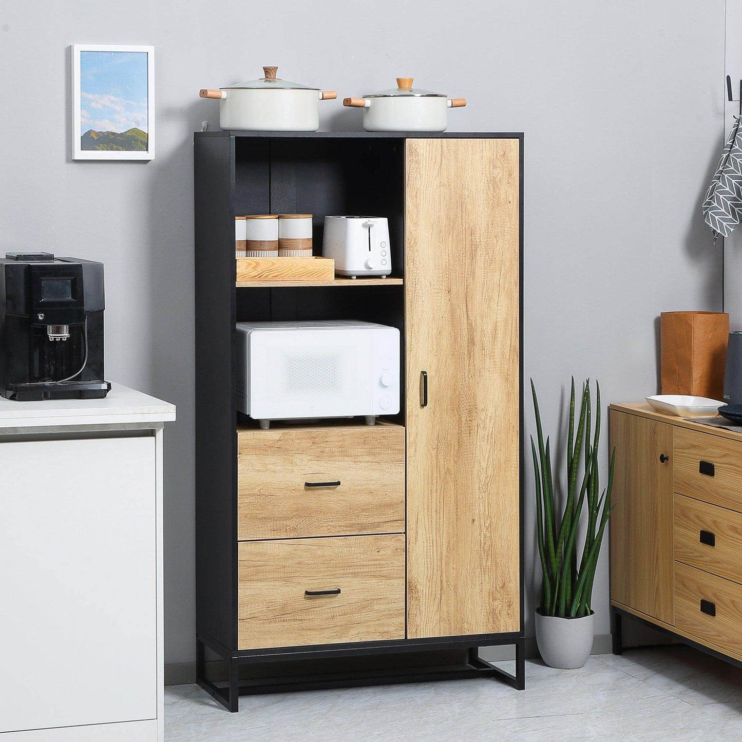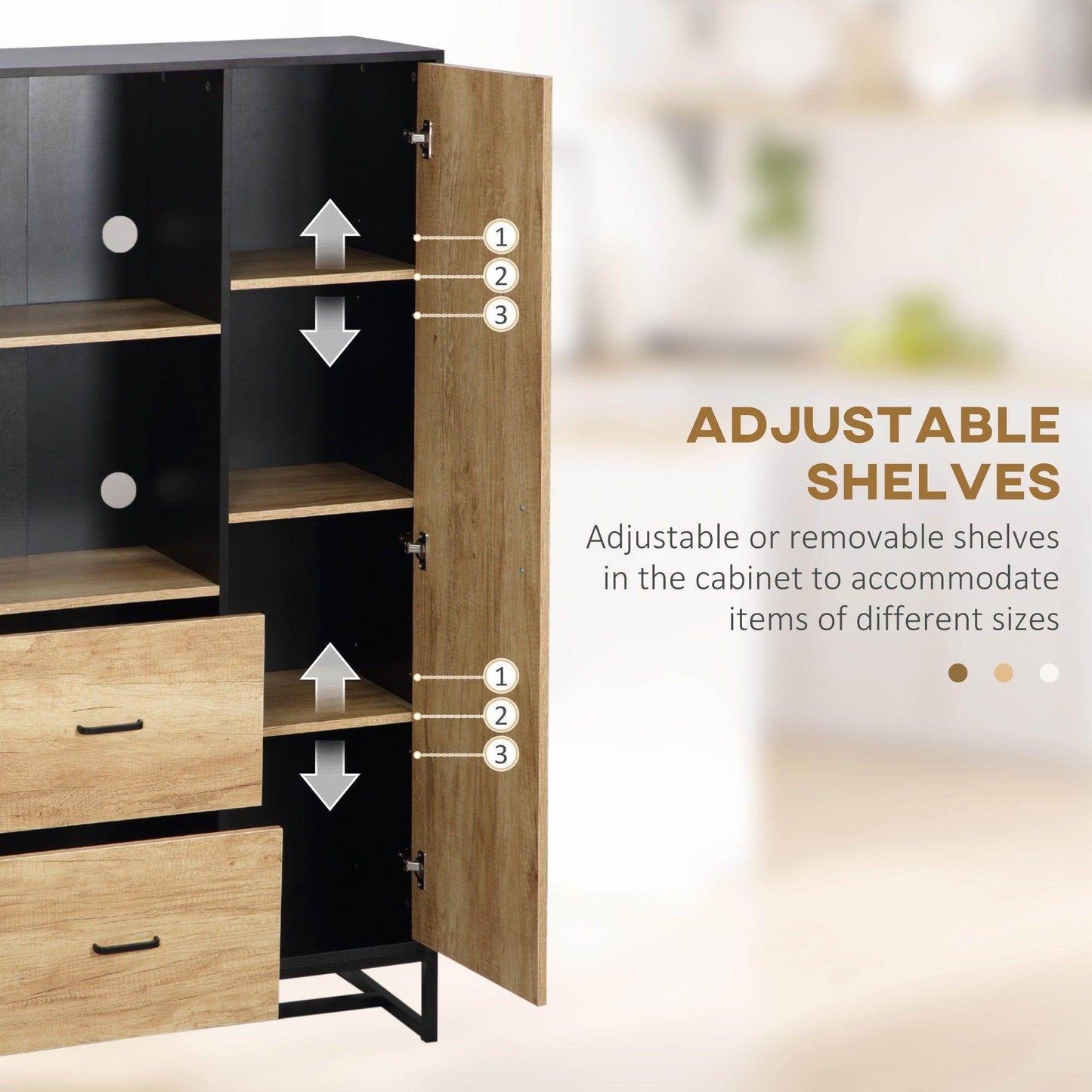 HOMCOM Kitchen Cupboard with Adjustable Shelves: Natural & Black