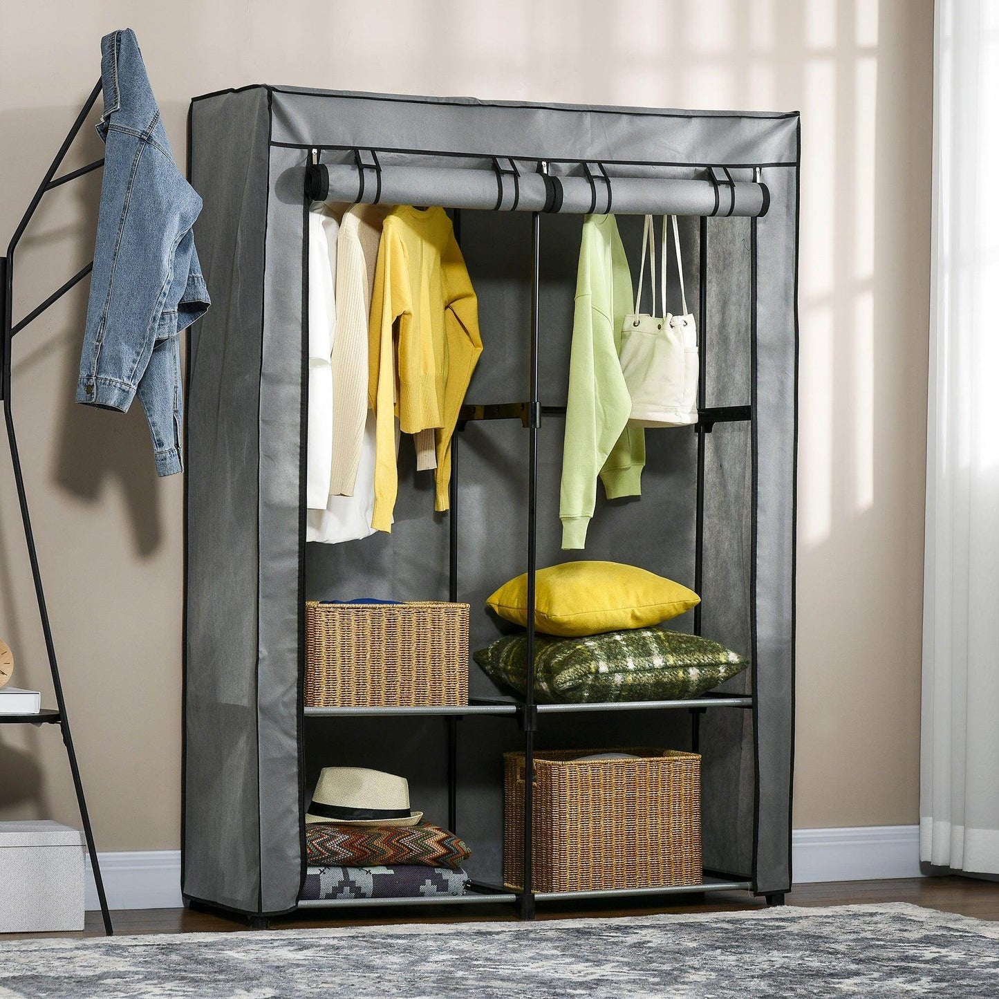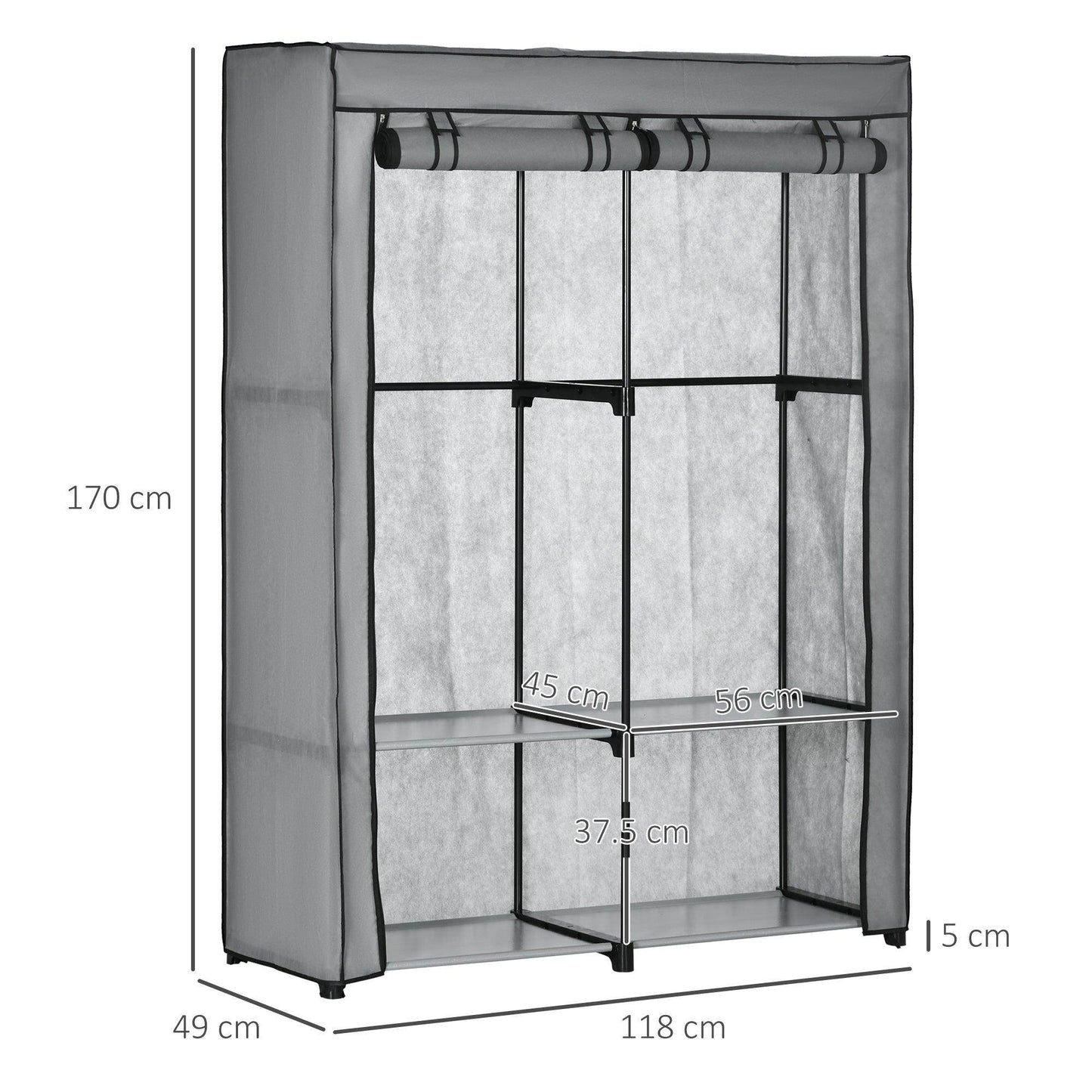 homcom Portable Fabric Wardrobe, 4 Shelves, 2 Hanging Rails