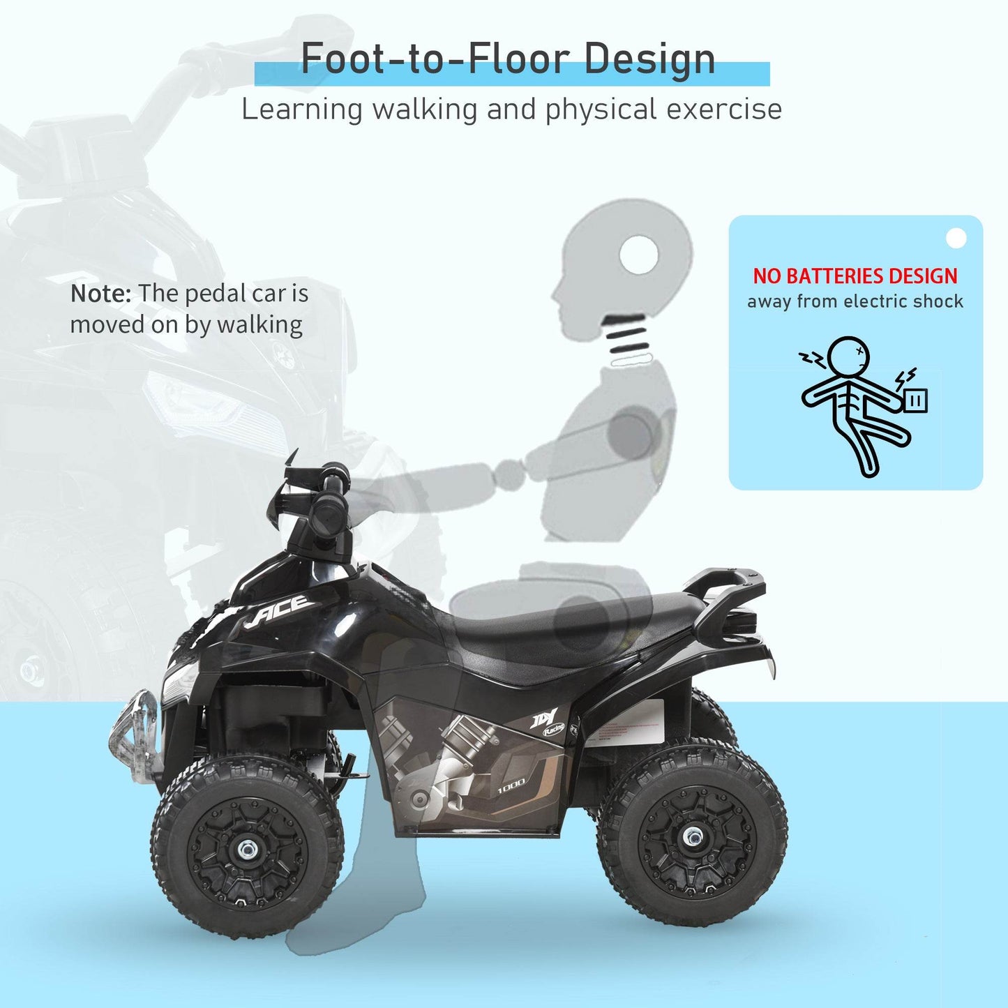 HOMCOM 4-Pack Black Kids Foot-to-Floor Sliding Ride-On Quad Car for Ages 18-36 Months