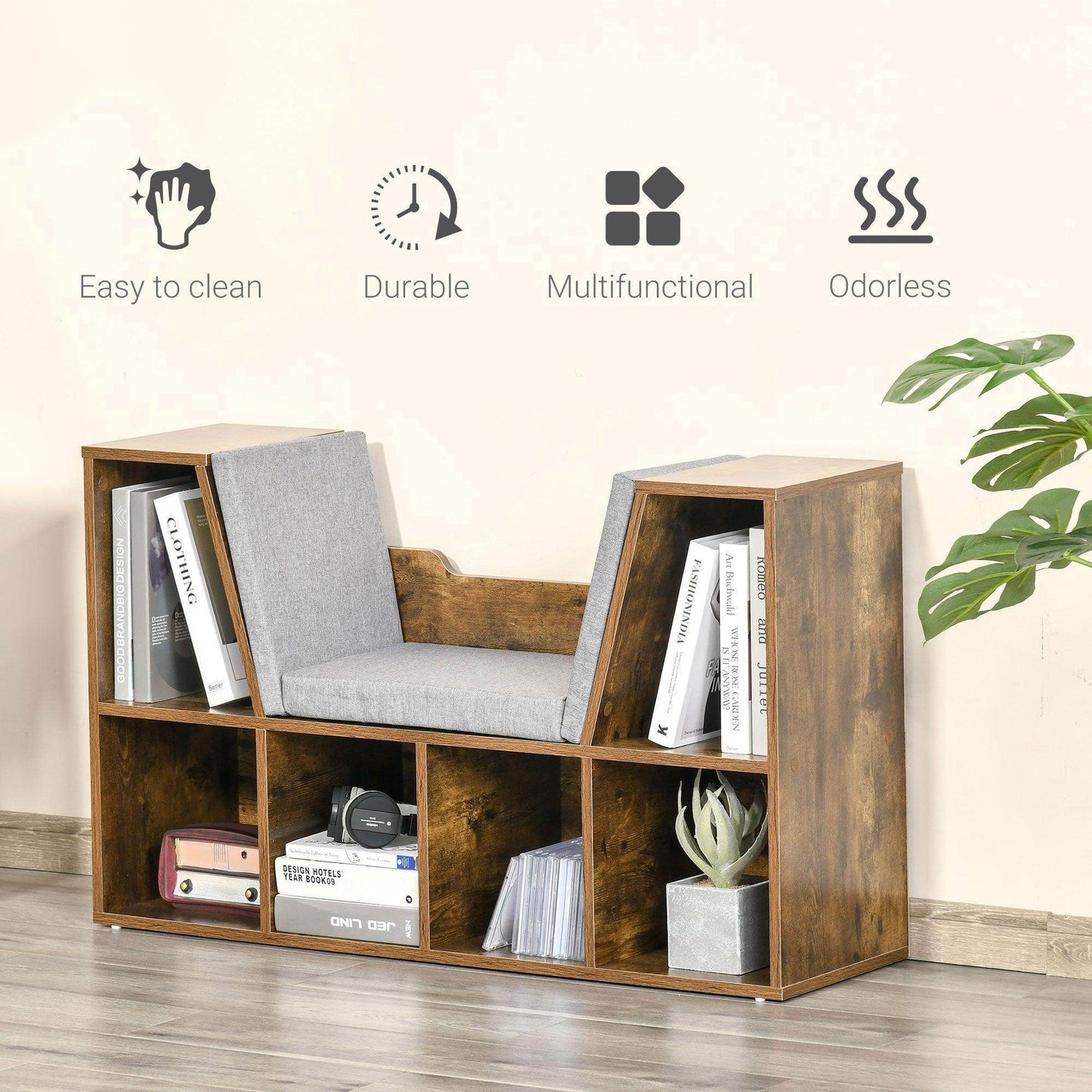 Whether you're a child or an adult, the HOMCOM Rustic Brown Bookcase Seat is the perfect addition to your home, inviting you to cozy up with a good book while keeping your space organized.