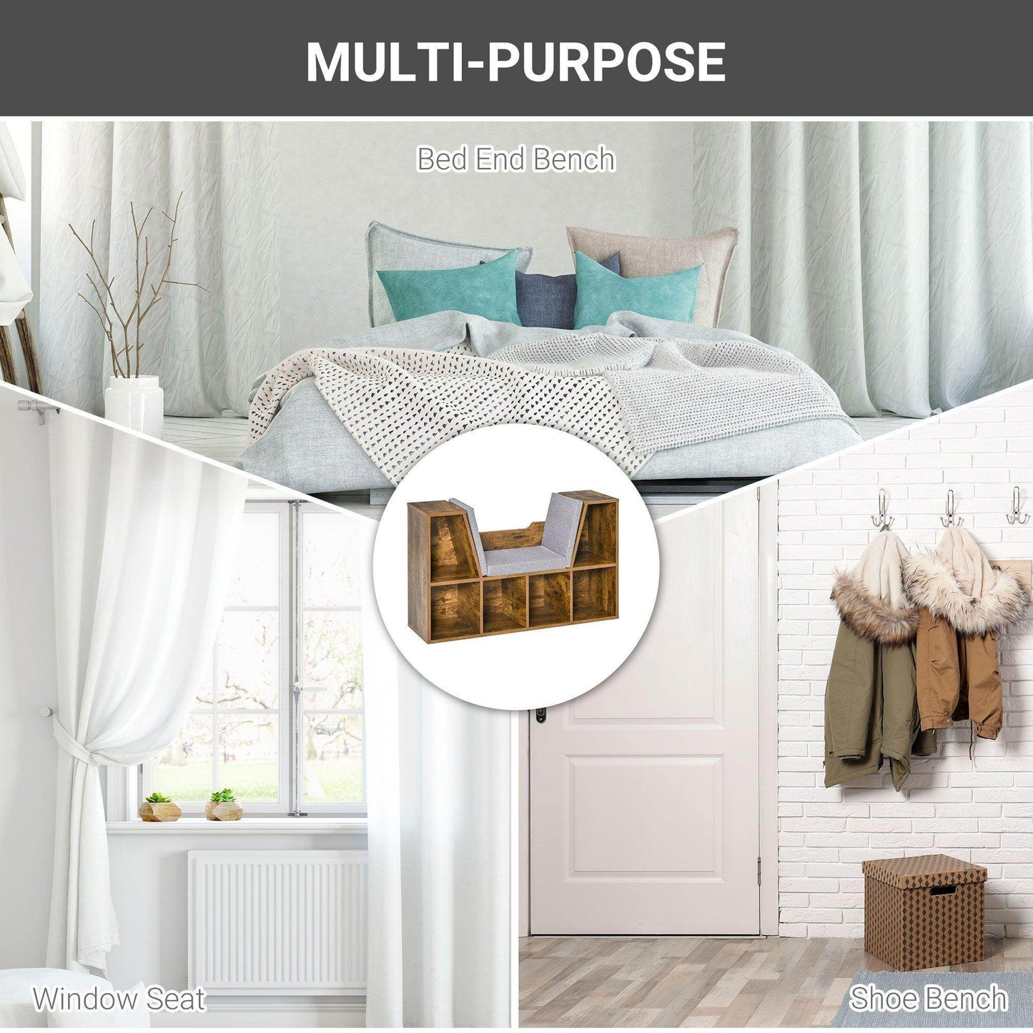 HOMCOM Rustic Brown Bookcase Seat: Simple & Stylish Storage
