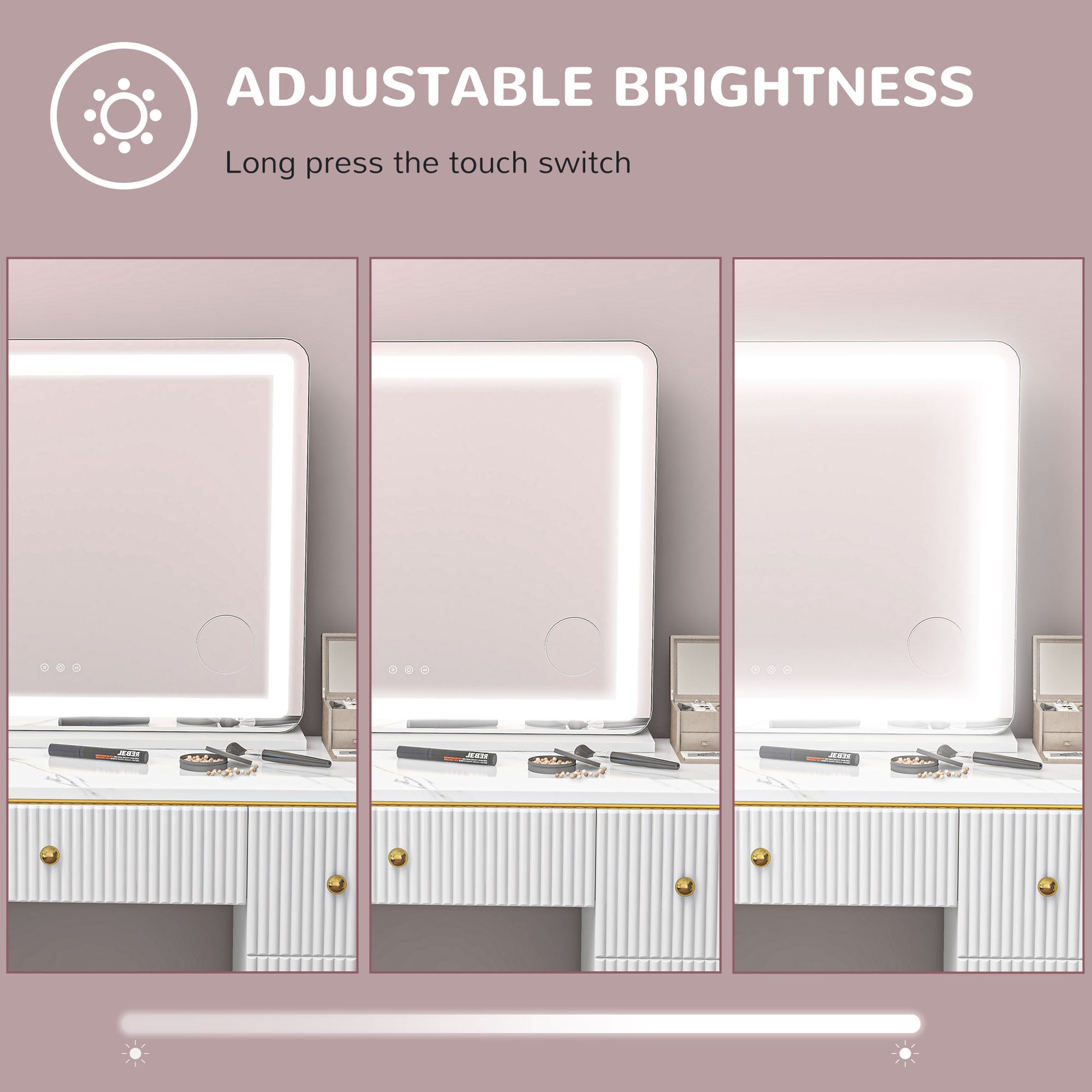 HOMCOM Vanity Mirror With Lights 80x62 Cm Makeup Mirror 3 Colour Temperature 10X Magnification Touch Screen USB Port