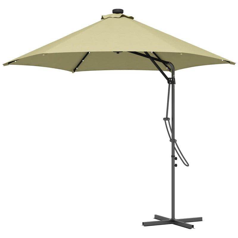 Outsunny 3m Garden Cantilever Umbrella with Solar LED Lights - Cross Base, Waterproof Cover - Stylish Beige Patio Parasol for Enhanced Outdoor Comfort