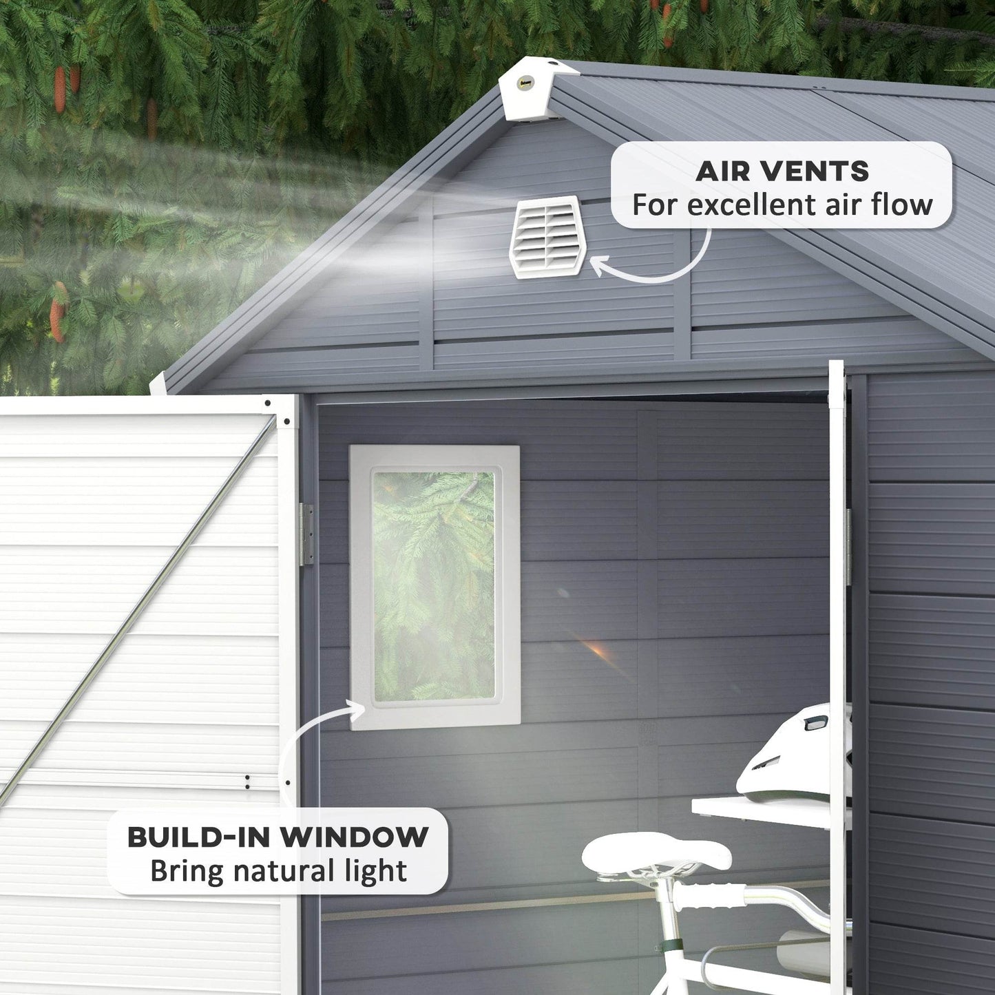 Outsunny Lockable 8x6ft Outdoor Garden Storage Shed with Ventilation and Foundation Kit - Grey Polypropylene