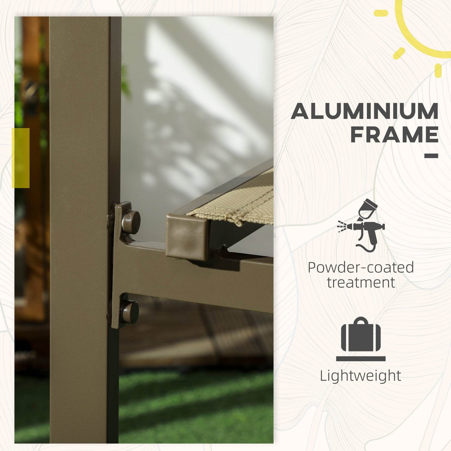 Outsunny Set of 2 Khaki Aluminium Stacking Garden Chairs for Outdoor Patio