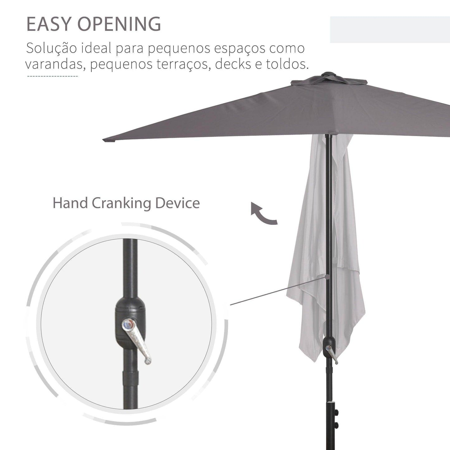 Outsunny Half Parasol Umbrella - 2.3m, Grey