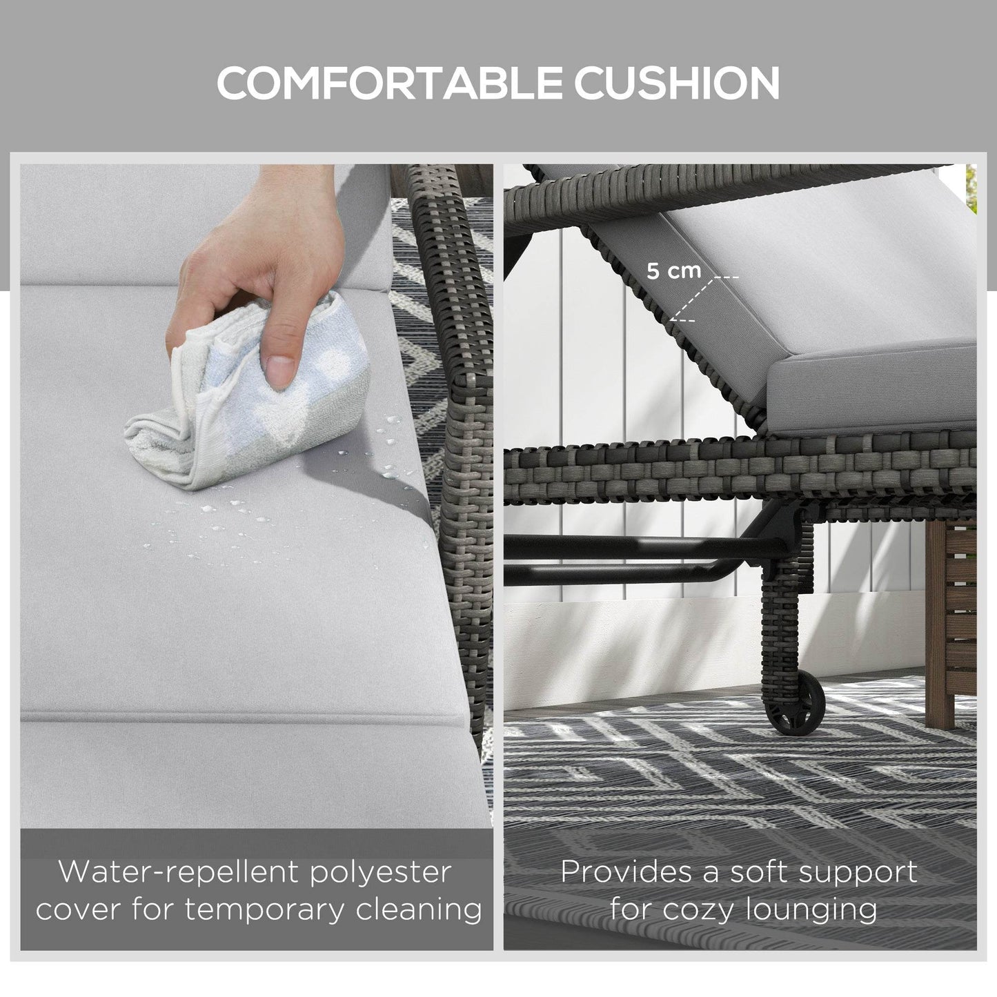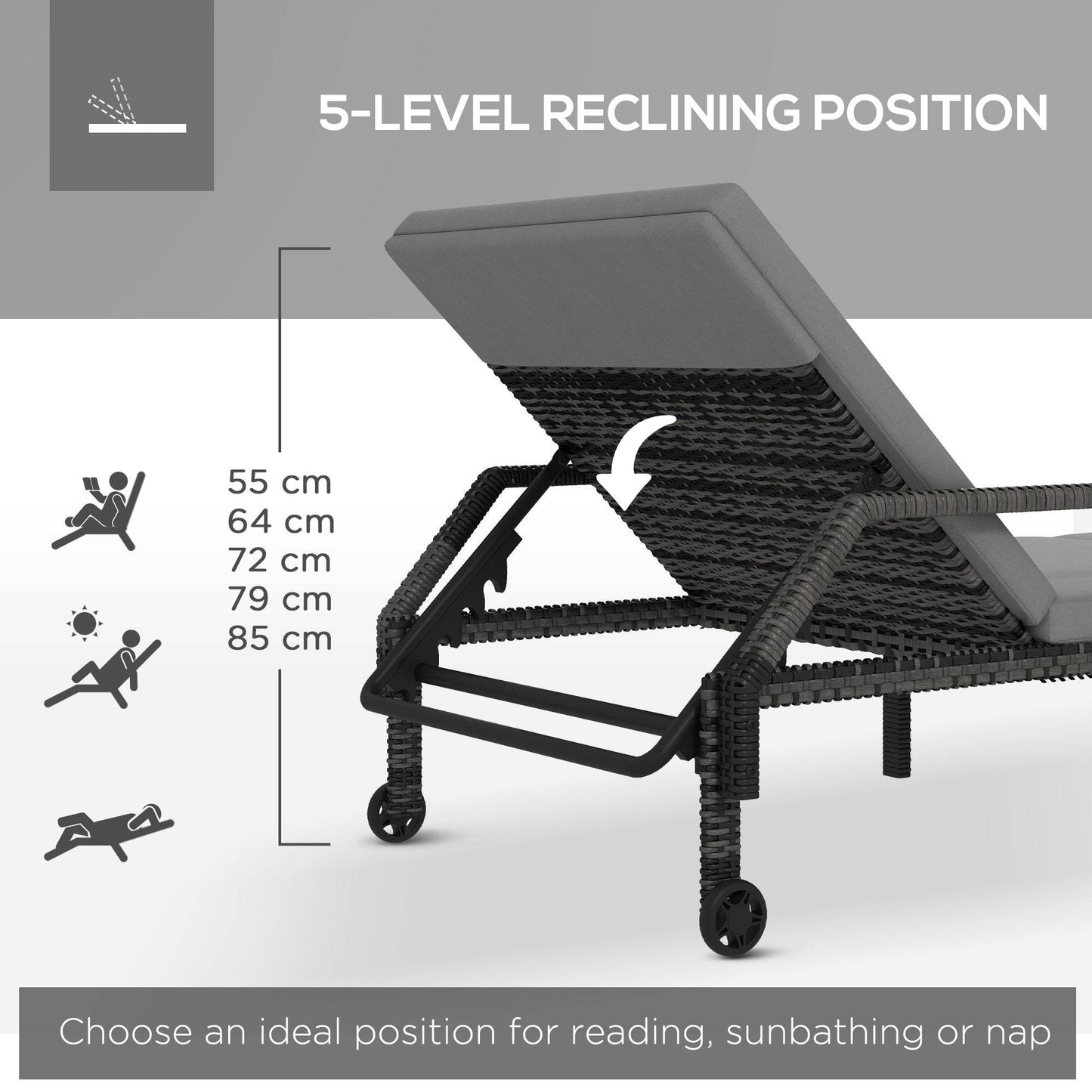 Outsunny Grey PE Rattan Outdoor Sun Lounger Set of 2 with Adjustable Backrest and Wheels